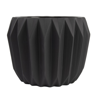 Round Stoneware Fluted Planter, Matte Grey